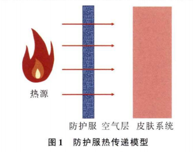 在人體-服裝-環(huán)境復(fù)雜傳熱中,化學(xué)防護服介于火源和人體之間,充當(dāng)一種介質(zhì),其主要作用是阻止或減緩熱量向人體的傳遞,降低高溫環(huán)境對人體的威脅,故防護服的熱防護性能是評估熱防護服必備的指標(biāo)。因此,研究熱防護服在人體-服裝-環(huán)境之間的熱傳遞,對評估以及改進防護服的熱防護性能具有重要意義。