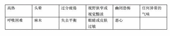 注意:穿著防化服時,如果出現(xiàn)以下描述癥狀,請立即脫下防化服: