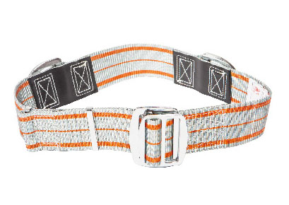 ·消防安全腰帶是一種緊扣于腰部的帶有必要金屬零件的織帶,用于承受人體重量以保護(hù)其安全,適用于消防員登梯作蚜口逃生自救。消防安全腰帶帶長(zhǎng)連續(xù)可調(diào),由織帶、內(nèi)帶扣、外帶扣、環(huán)扣和兩個(gè)拉環(huán)等零部件構(gòu)成。消防安全腰帶的設(shè)計(jì)負(fù)荷為1.33N,其質(zhì)量不超過o.85kg??棊橐徽瑹o接縫,其寬度為{70±1)mm。具有靜負(fù)荷性能、抗沖擊性能、耐高溫性能以及金屬零件的耐腐蝕性能。
